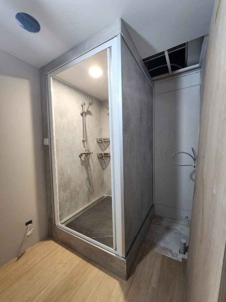 GAD017 | 三峽快客整體衛浴案例 PEI2025 年 7 月 2 日浴室舊翻新 施工前 施工中 完工照 詳細資訊 項目內容施作年份2024施作類型浴室舊翻新板材類型清水模系列板材顏色清水模 底座支架雷神系列-鋁骨架 地板面材灰色石紋919 外觀形狀方形 施作地點室內門片選擇PS折門施作用途其他商用 衛浴設備沐浴龍頭 掛件五金 附加工程無其他設備無無障礙設備無備註