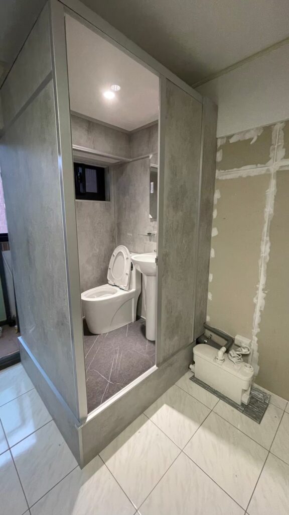 GAG028|臨江街快客整體衛浴案例 YO2025 年 7 月 7 日新增整體浴室 施作說明及照片 施工中 完工照 詳細資訊 項目內容關鍵字施作年份2025施作類型新增整體浴室 板材類型清水模系列 板材顏色清水模 底座支架雷神系列-鋁骨架地板面材灰色石紋919 外觀形狀方形 施作地點室內 門片選擇塑鋼門內開 施作用途一般家用 衛浴設備沐浴龍頭 一般馬桶 一般洗手台 掛件五金 附加工程兩側收邊 其他設備排汙馬達 無障礙設備無備註