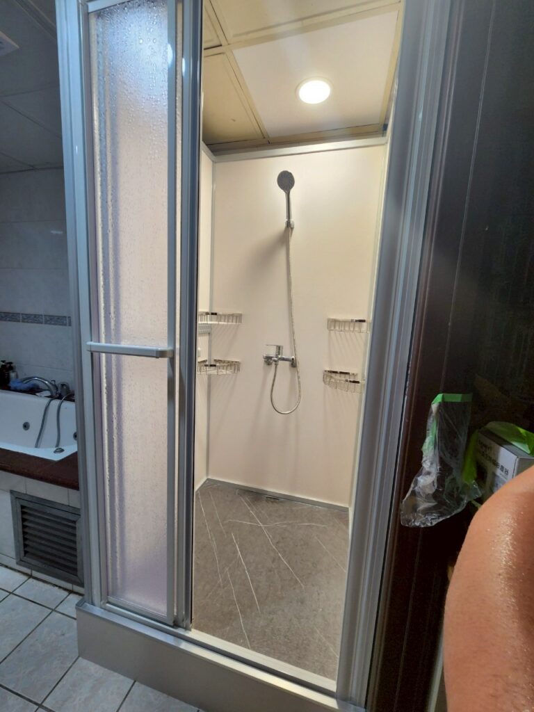 HAC052|中正杭州南路一段快客整體衛浴案例 SUNNY2025 年 7 月 9 日新增整體浴室 完工照 詳細資訊 項目內容關鍵字施作年份2025施作類型新增整體浴室 板材類型經典系列 板材顏色白色 底座支架浩克系列-塑鋼 地板面材灰色石紋919 外觀形狀方形 施作地點室內 門片選擇PS一字三門 施作用途一般家用 衛浴設備沐浴龍頭 掛件五金 附加工程兩側收邊其他設備無無障礙設備無備註