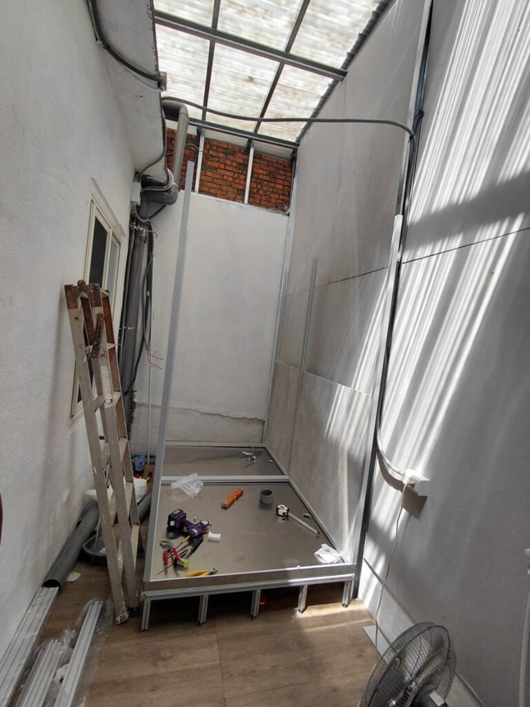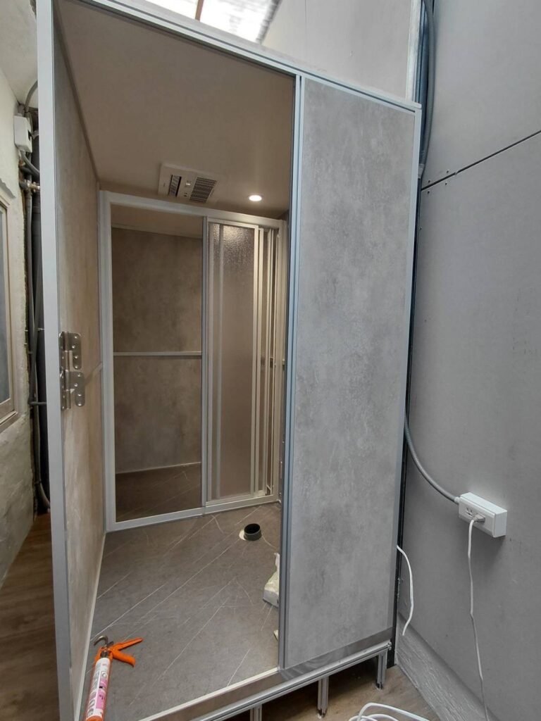 HAF025 | 楊梅楊新路快客整體衛浴案例 YO2025 年 10 月 2 日新增整體浴室 施作說明及照片 施工中 完工後 詳細資訊 項目內容關鍵字施作年份2025施作類型新增整體浴室板材類型清水模系列 板材顏色清水模 底座支架雷神系列-鋁骨架地板面材灰色SPC 外觀形狀方形 施作地點室內門片選擇塑鋼門內開施作用途一般家用衛浴設備沐浴龍頭 一般馬桶 一般洗手台 掛件五金 附加工程水電配管 其他設備無障礙設備備註