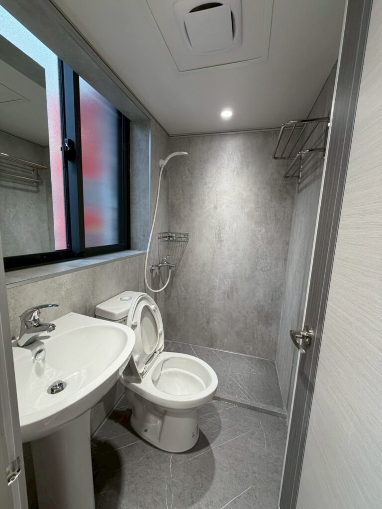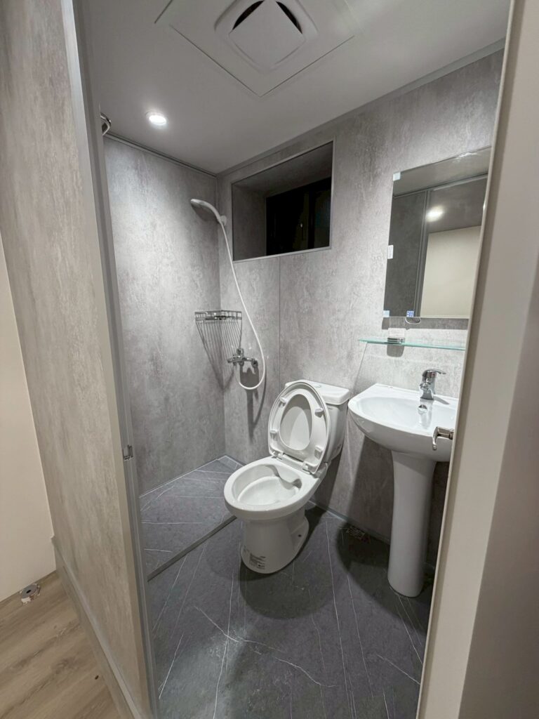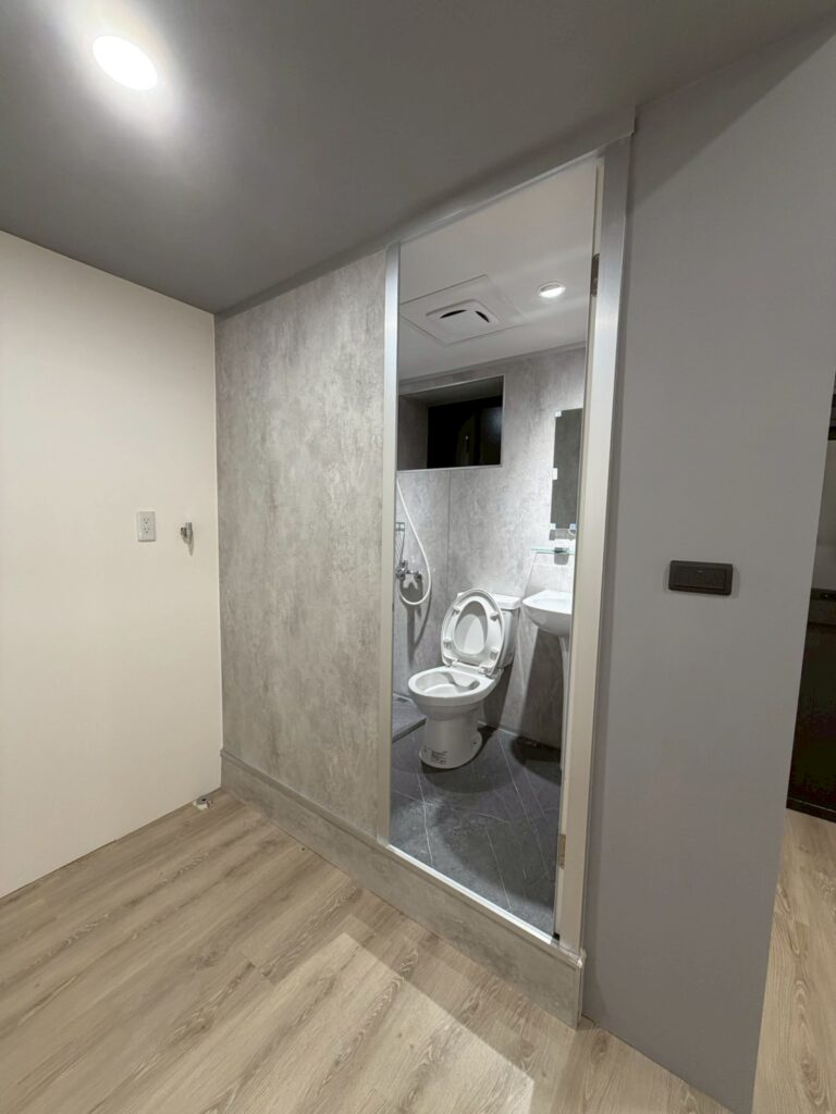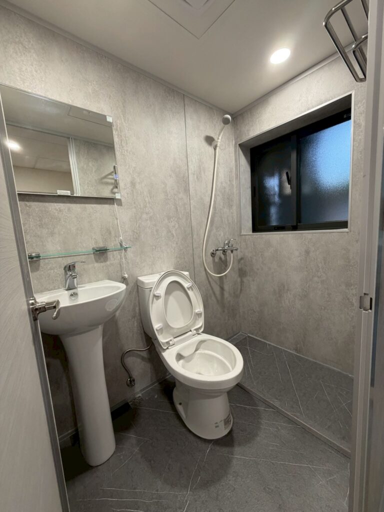 HAG020 | 重慶北路透天快客整體衛浴案例 YO2025 年 11 月 20 日新增整體浴室 施作說明及照片 完工後 詳細資訊 項目內容關鍵字施作年份2025施作類型新增整體浴室板材類型清水模系列板材顏色清水模 底座支架雷神系列-鋁骨架 地板面材灰色SPC 外觀形狀方形 施作地點室內門片選擇塑鋼門內開 窗戶施作用途一般家用 衛浴設備沐浴龍頭 一般馬桶 一般洗手台 臉盆兩用龍頭 掛件五金附加工程兩側收邊 其他設備無無障礙設備無備註